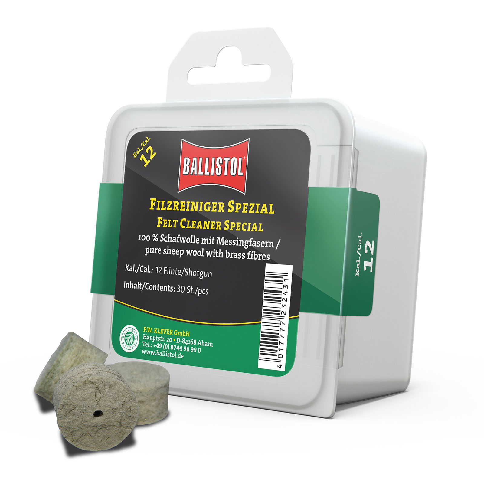 Die Spezial Reinigungsfilze von Ballistol bestehen aus reiner Schafwolle mit eingewebten Mesingfasern und sind besonders für die Intensiv-Reinigung stark verschmutzter Läufe geeignet.