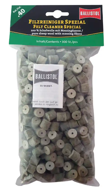 Die Spezial Reinigungsfilze von Ballistol bestehen aus reiner Schafwolle mit eingewebten Mesingfasern und sind besonders für die Intensiv-Reinigung stark verschmutzter Läufe geeignet.