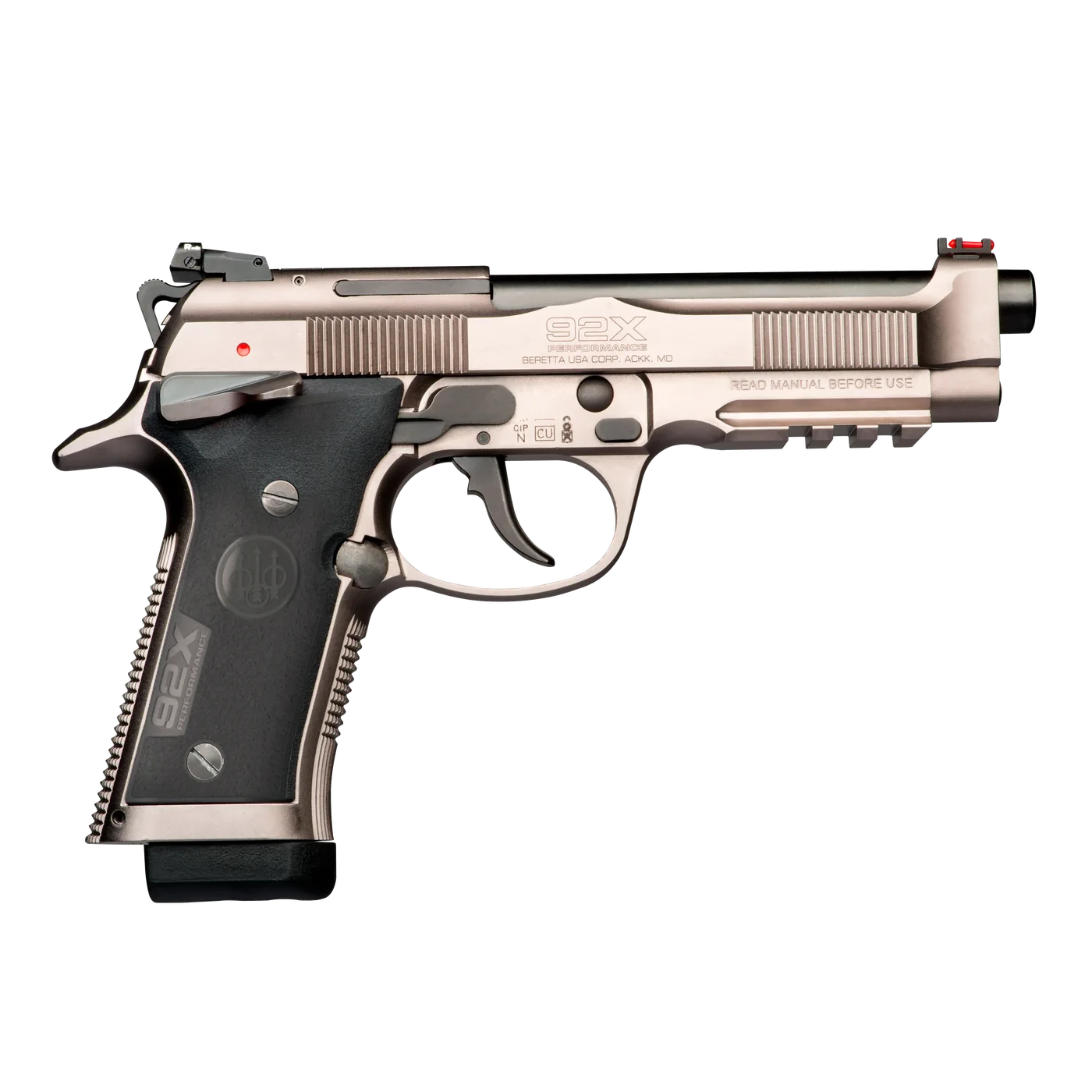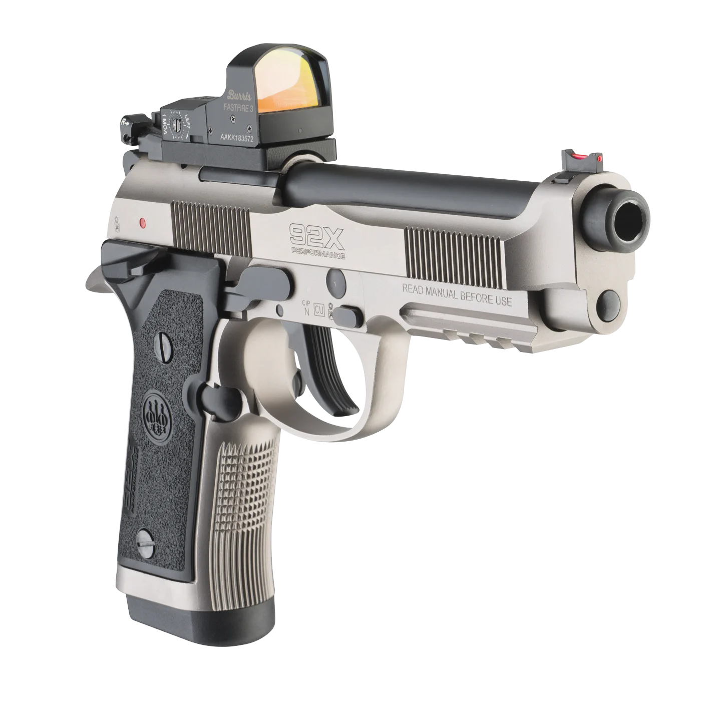Technische Entscheidungen wie der Vertec-Stahlrahmen und der Brigadier-Schlitten bringen das Gewicht der 92X Performance auf 1350 g, ein Schlüsselgewicht, das die Stabilität der Pistole erhöht und die Mündungserhöhung beim Schießen reduziert. Die Sicherung am Rahmen ist beidhändig und in drei verschiedenen Größenprofilen erhältlich, wodurch sie sich an verschiedene Handtypen und verschiedene IPSC-Divisionen anpassen lässt.