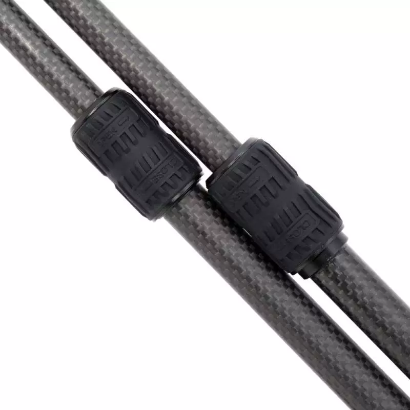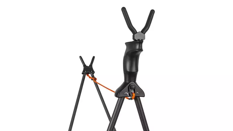 Aus fasergestärktem Carbon ist der Zielstock extrem robust und verfügt gleichzeitig mit 985 Gramm über ein geringes Gewicht. Um Beschädigungen am Stock zu verhindern, sind Vordergabel & Aufnahmepin magnetisch abnehmbar.