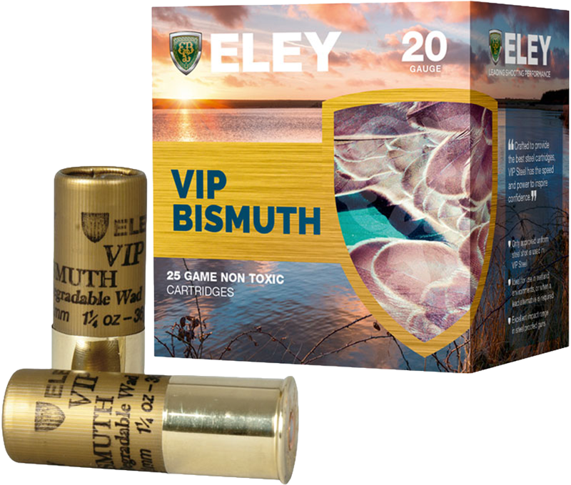 Wismut hat viele Eigenschaften, die denen von Blei ähnlich sind, besonders in Bezug auf Dichte und Härte. Das macht es zum idealen Ersatz, wo eine nichttoxische Patrone erforderlich ist. ELEY VIP Wismut ist in der Kombination von ELEY Pfropfen und des neuen EVO III Wismutschrots besonders umweltfreundlich. EVO III Schrot ist eine neue und sorgfältig legierte Mischung von Wismut und Zinn mit weniger als 0,2 % Verunreinigung aus nicht-toxischem Silber und Kupfer. Das gibt EVO III die Verformungsqualitäten von Blei, die sicherstellt, dass die Schrotkörner intakt beim Einschuss bleiben, sich aber auch soweit deformieren, um Energie freizusetzen und sauber zu töten.