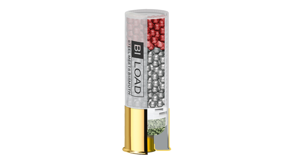 • Zwei Schrotlagen: vorne schwere, rote 3,8 mm Bismutschrote für mehr Energie, hinten leichtere 3,5 mm Stahlschrote für perfekte Deckung und höhere Trefferquote