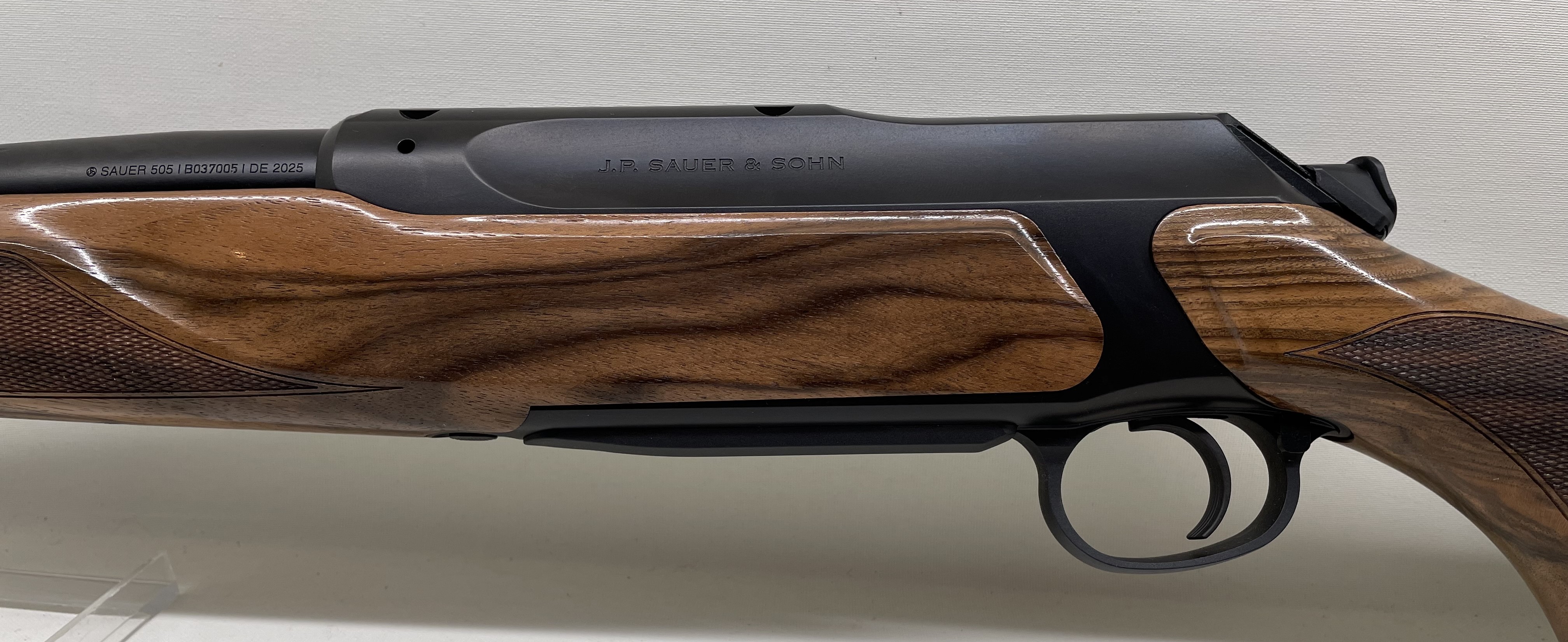 Die Sauer 505 ist mit ihrem ergonomischen Design ein absoluter Blickfang. Ihr eleganter und dynamischer Look verbindet Schönheit und Funktionalität perfekt miteinander. Diese Büchse ist schlank, schön und geschmeidig - ein unwiderstehliches Modell, das viele Generationen begeistern wird.
